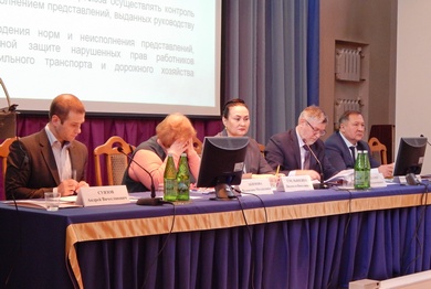 В заседании принял участие председатель Профсоюза РОСПРОФТРАНСДОР Владимир Ломакин. |