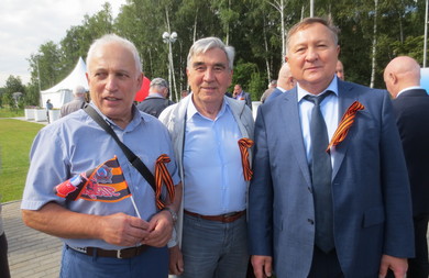 С Праздником Победы поздравил собравшихся председатель Московского горкома профсоюза Шуриков А.Л. В торжественном мероприятии принял участие председатель профсоюза РОСПРОФТРАНСДОР Владимир Ломакин. В ходе торжественных меропрмятия состоялся вынос знамени Победы и флага Российской Федерации. Служащие воинских частей совершили торжественный марш. Участники почтили память не вернувшихся с войны минутой молчания. В завершении собравшиеся возложили цветы к монументу Героям-автомобилистам. На фото: во время митинга, участники торжественного мероприятия во время обмена мнениями.