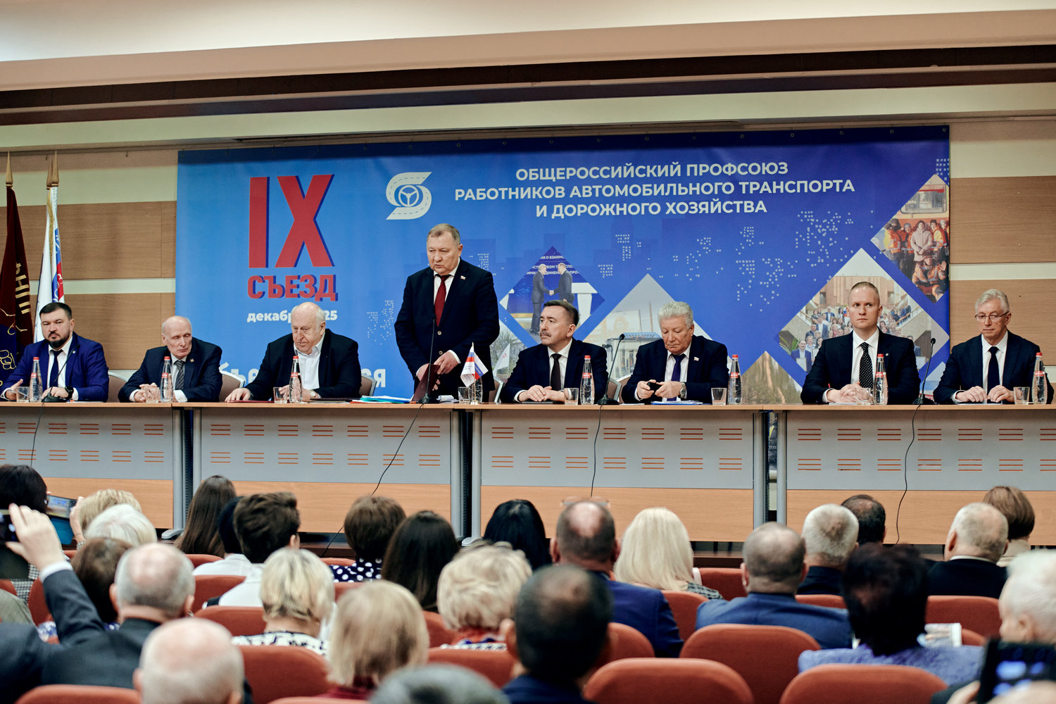 11 декабря в Москве состоялся IX съезд Общероссийского профсоюза работников автомобильного транспорта и дорожного хозяйства (Роспрофтрансдор). На Съезде присутствовало 108 делегатов, в состав Центрального комитета Профсоюза делегировано 99 представителей территориальных организаций. Наиболее многочисленные делегации были представлены от Москвы и Московской области, Санкт-Петербурга и Ленинградской области, республик Татарстан и Башкортостан. В числе делегатов –руководители крупный отраслевых предприятий, организаций, учреждений, а также инженерно-технические работники. Председатель Общероссийского профсоюза работников автомобильного транспорта и дорожного хозяйства Владимир Ломакин уделил особое внимание в своем выступлении работе по обеспечению социально-экономических гарантий для работников отрасли: «Приняты решения, которые, как мы надеемся, смогут улучшить социально-экономическое положение дорожных предприятий. Так, Приказом Минтранса РФ от 15.09.2025 г. №287 утверждены повышенные нормативы расходов на оплату труда работников дорожных организаций, которые должны учитываться при определении стоимости дорожных работ. Мы благодарим руководство Министерства транспорта Российской Федерации и Росавтодора за активную позицию и поддержку в принятии этих мер. Особенно важно, чтобы для работников дорожного хозяйства были установлены социальные гарантии, в первую очередь, по размерам оплаты труда». Председатель также добавил, что Центральный комитет Профсоюза традиционно заключал отраслевые соглашения в области пассажирского транспорта и дорожного хозяйства РФ, которые стали главными документами социальной направленности. На съезде делегатам была представлена одна кандидатура на должность председателя профсоюза - Владимира Ломакина. Его избрали вновь председателем Роспрофтрансдора. Кроме того, делегаты приняли ряд резолюций и обозначили приоритетные пути развития профсоюза на следующем этапе. НАПРАВЛЕНИЯ ДЕЯТЕЛЬНОСТИ