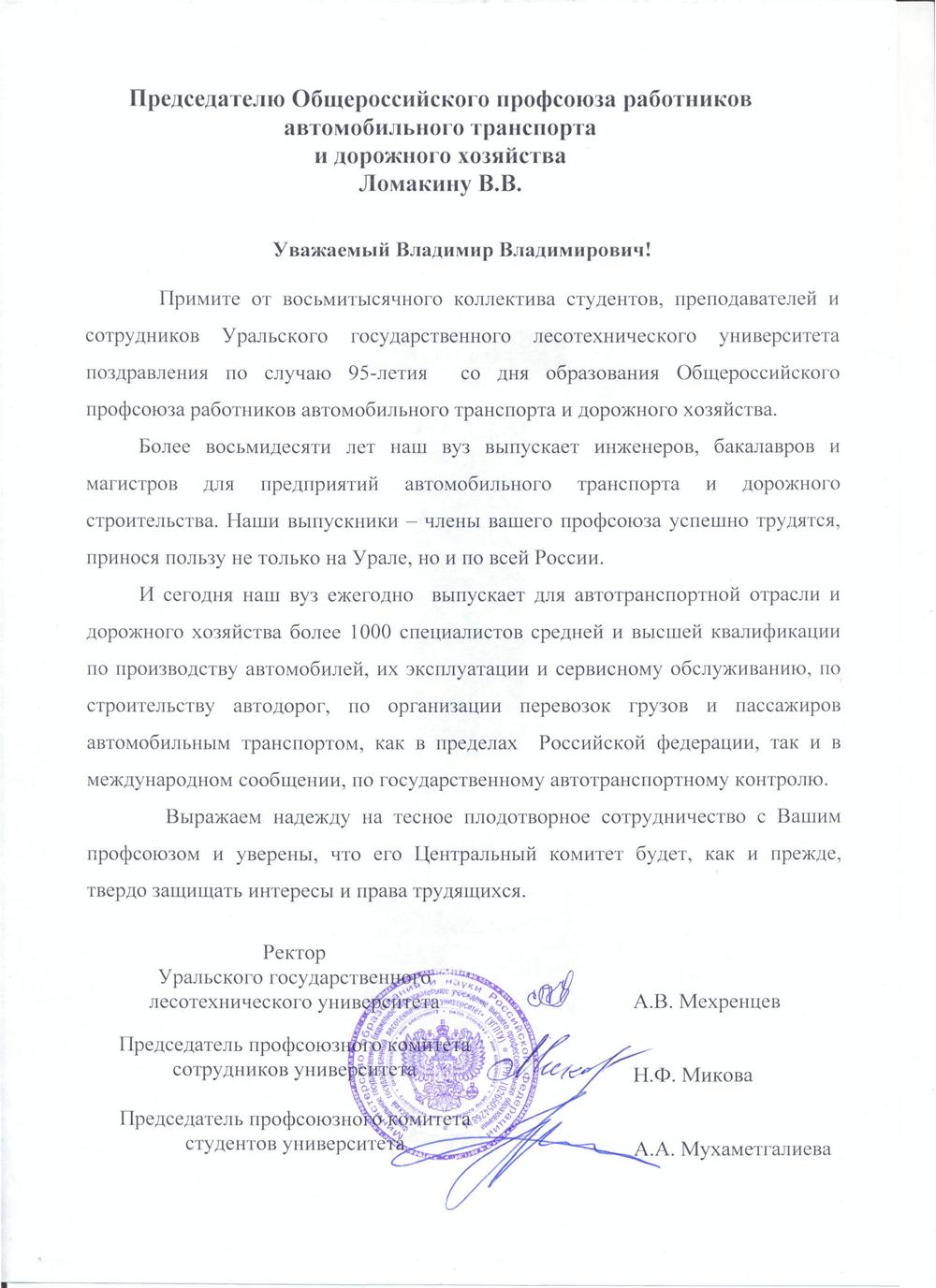Лесотехнический университет В адрес профсоюза поступили также поздравления коллег из общероссийских профсоюзов работников разных отраслей экономики, руководителей и комитетов профсоюза отраслевых предприятий, председателей и комитетов территориальгных организаций профсоюза. НАПРАВЛЕНИЯ ДЕЯТЕЛЬНОСТИ