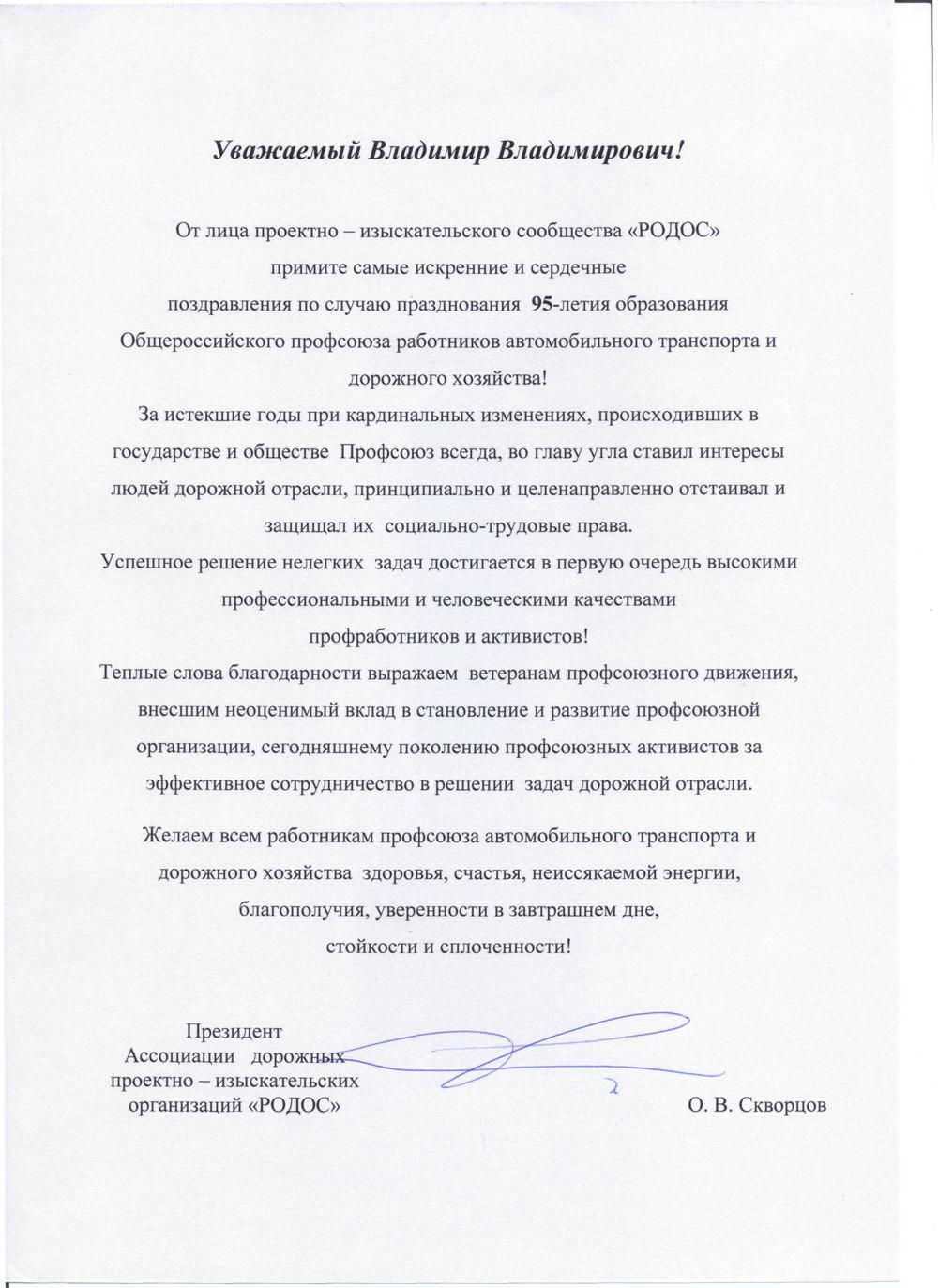 Смотреть Презентацию фотоматериалов о 95 - летии профсоюза Накануне - 17 сентября участники мероприятий возложили цветы на могилы первого председателя профсоюза Садовского А.Д. и Председателя ЦК профсоюза в 1979-1990 г.г. Яковлева Л.А. Смотреть фотоотчет о возложении цветов. В торжественном собрании по случаю 95-летия профсоюза приняли участие и поздравили профсоюз с Юбилеем Первый заместитель председателя ФНПР Некрасов С.Г., Зам. Министра транспорта РФ Асаул Н.А., заместитель руководителя Федерального дорожного агентства Астахов И.Г., Президент РАС Старовойтов О.И., Президент АСПОРМалов А.С., Зам.генерального директора ассоциации РАДОР Цаплина А.В., Президент ассоциации РОДОС Скворцов О.В., Вице-президент Союза транспортников РоссииБелоусов В.В., Начальник юридического управления Федерального агентства по труду и занятости Харитоненко К.А., руководители отраслевых хозяйственных и научных организаций, печатных изданий.