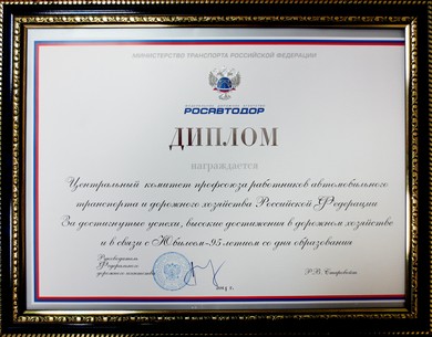18 сентября 2019 года ОБЩЕРОССИЙСКОМУ ПРОФСОЮЗУ РАБОТНИКОВ АВТОМОБИЛЬНОГО ТРАНСПОРТА И ДОРОЖНОГО ХОЗЯЙСТВА ИСПОЛНИЛОСЬ 100 ЛЕТ